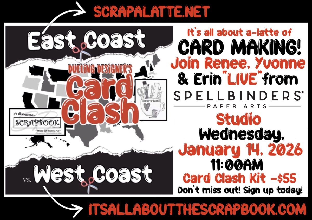 It’s like FREE classes as we only charge retail! Club Members get to choose the cards they’d like to duplicate … or perhaps remake with their own touches of creativity. You’re encouraged to post pics on the private Facebook page to share with fellow Clashers! Once you get started, you won’t want to stop! It would be appreciated if West Coast Members make their purchases associated with the Club from It's All About the Scrapbook and East Coast Members from Scrap-A-Latte here.