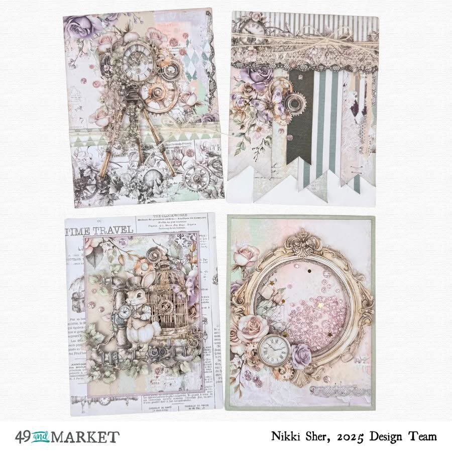 Join Nikki to create 16 amazing cards featuring the newest and hottest collection from 49 and Market!  This class is a series where you will create at least a dozen cards using the newest collection from 49 and Market.  The class includes everything you need to complete the cards including card bases and envelopes, patterned paper, laser cuts, ephemera, full color photos and more!